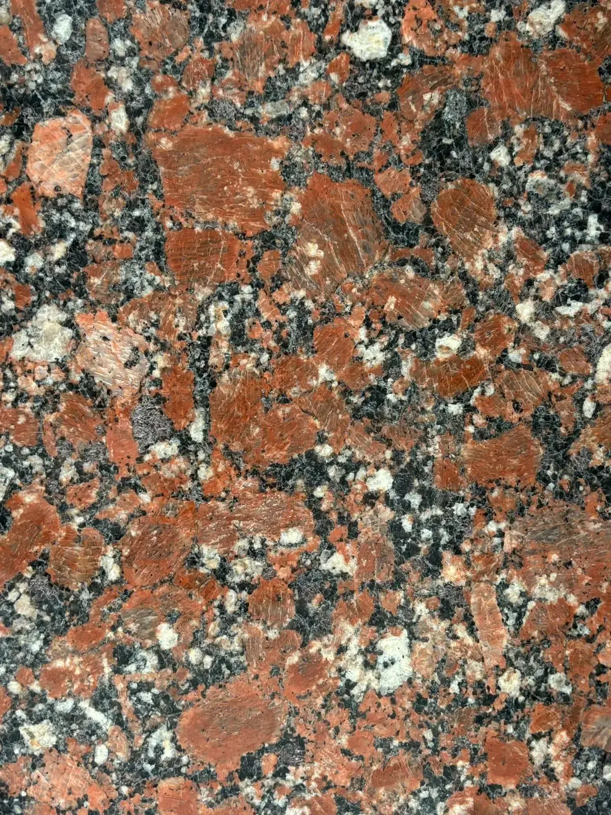 Markanter roter Granit mit kräftiger Körnung.